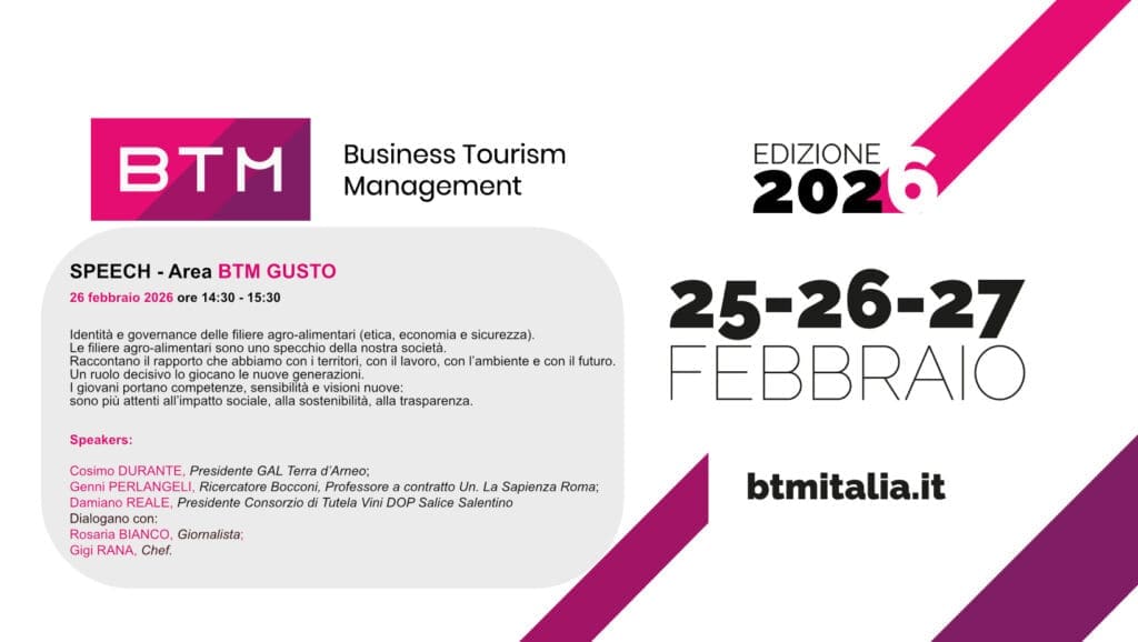 Momento centrale della partecipazione sarà il talk in programma giovedì 26 febbraio, dalle ore 14.30 alle 15.30, nella sezione BTM GUSTO, dal titolo: “Identità e governance delle filiere agro-alimentari (etica, economia e sicurezza)”. Il dibattito metterà al centro il ruolo delle filiere agroalimentari come specchio della società contemporanea: non solo sistemi produttivi, ma espressione del rapporto tra comunità, territorio, lavoro, ambiente e futuro. Un’occasione per interrogarsi su modelli economici, responsabilità collettive e nuove forme di partecipazione, con particolare attenzione al contributo delle giovani generazioni, sempre più sensibili ai temi della sostenibilità, della trasparenza e dell’impatto sociale.