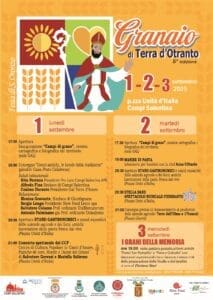 La manifestazione celebra e valorizza i produttori locali, le botteghe artigiane e la tradizione gastronomica legata agli antichi grani duri, recuperando varietà di frumento un tempo coltivate nelle nostre terre. Durante l’evento sarà conferito il Premio “Il Granaio di Terra d’Otranto”, riservato a due cittadini distintisi per l’impegno nella valorizzazione di questi grani antichi.